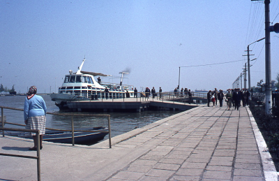 Delta van de Donau in Roemenië. Veerboot aan de kade.