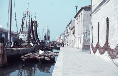 Delta van de Donau in Roemenië. Kade met bootjes.