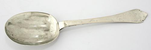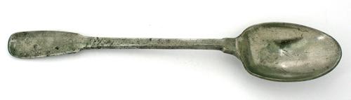 Lepel. Tinnen eetlepel met, waarschijnlijk, het gekr...