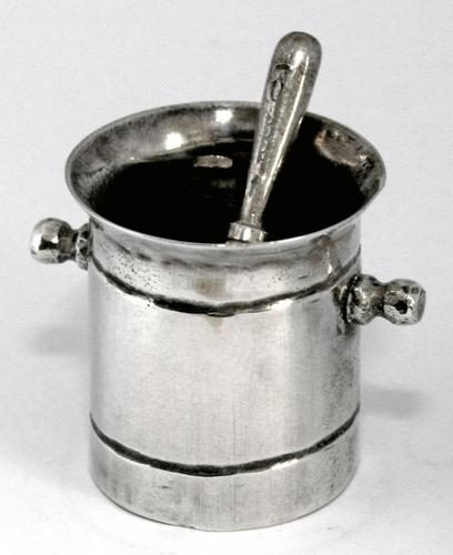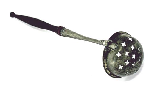 Lepel. Stevige tinnen brijlepel steel met Haagshofje...