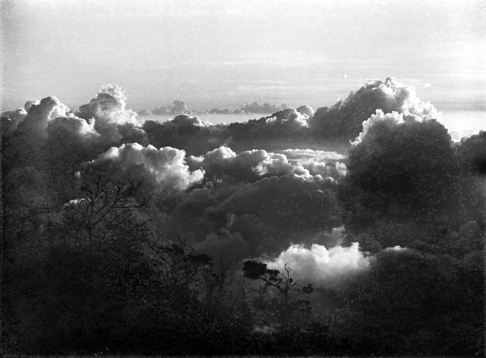 Wolkenzee bij zonsopgang vanaf de top van de vulkaan...