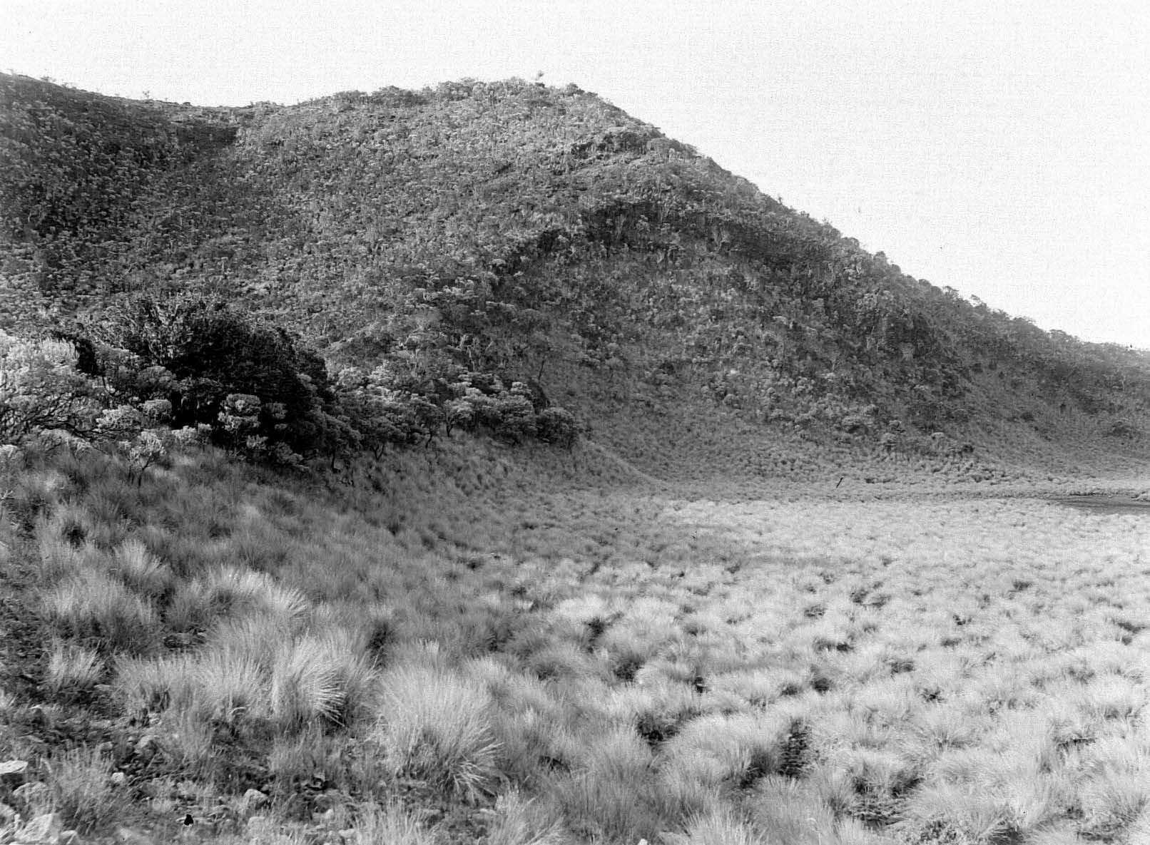 Oude kraterbodem van de Lawoe, begroeid met Festuca