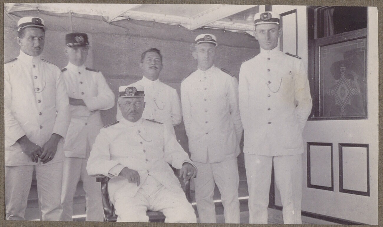 Kapitein Hopma met bemanning aan boord van stoomschi...