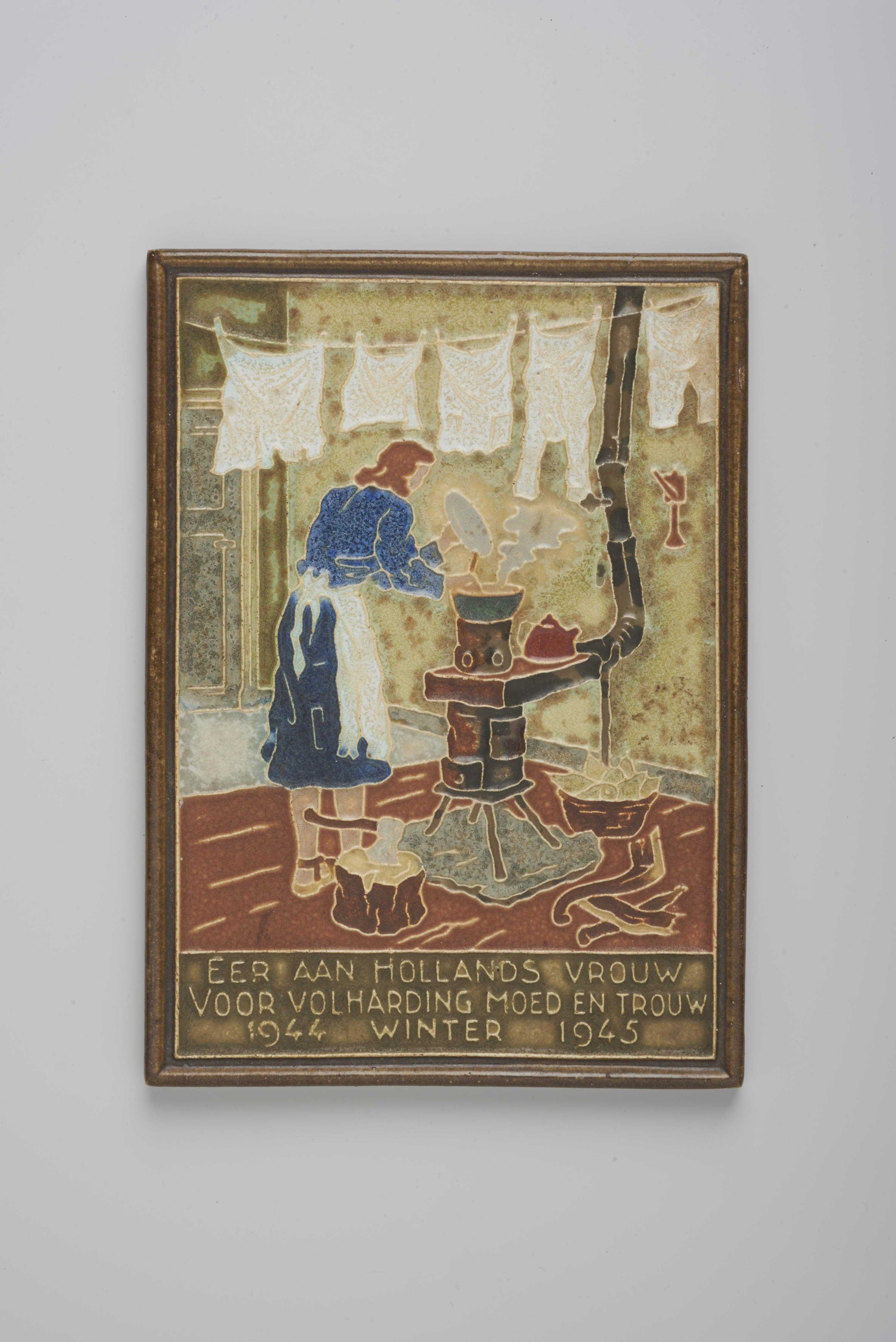 Wandtegel met afbeelding Zweede vlag, circa 1945