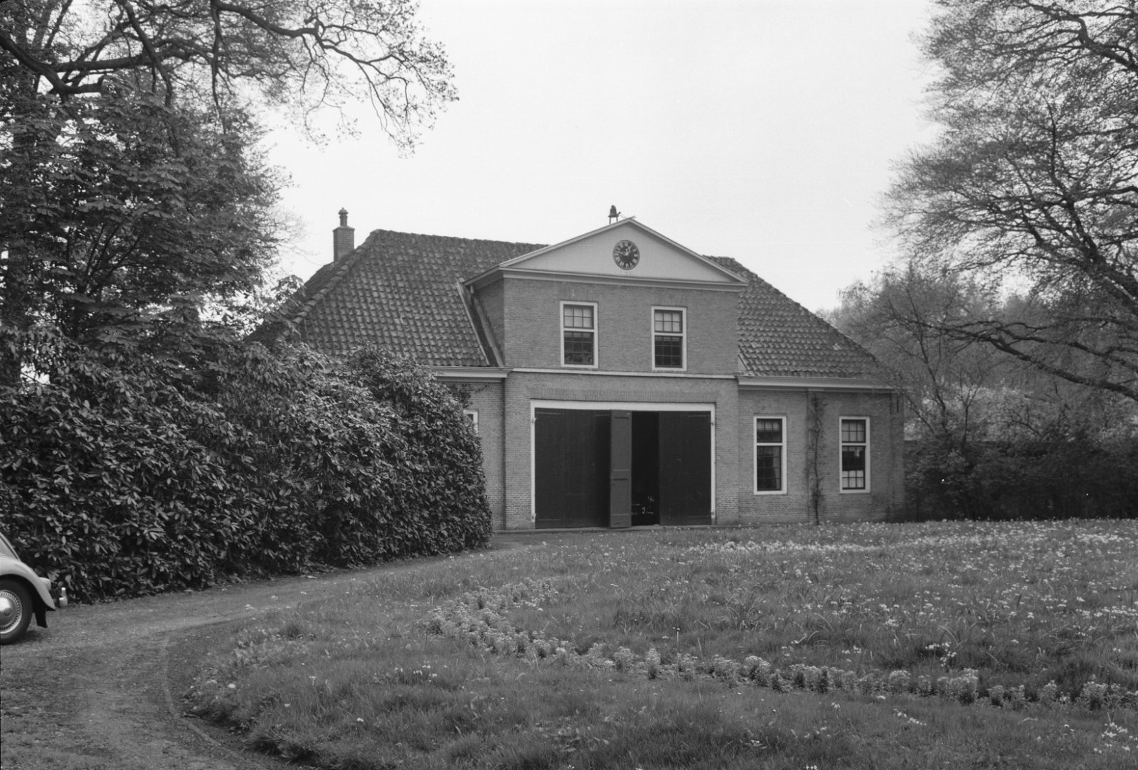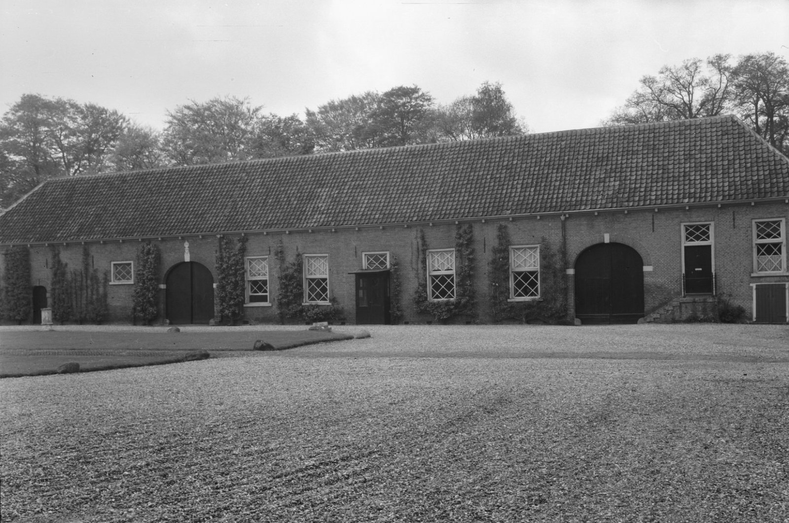 Overzicht van de voorgevel van het koetshuis