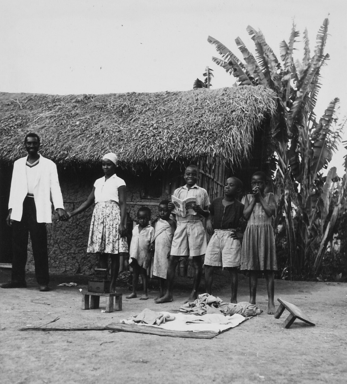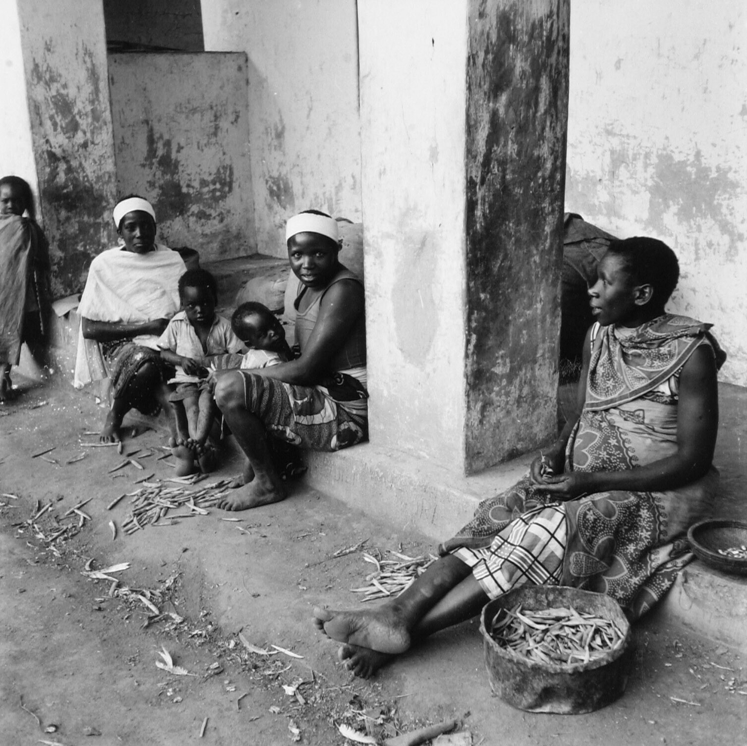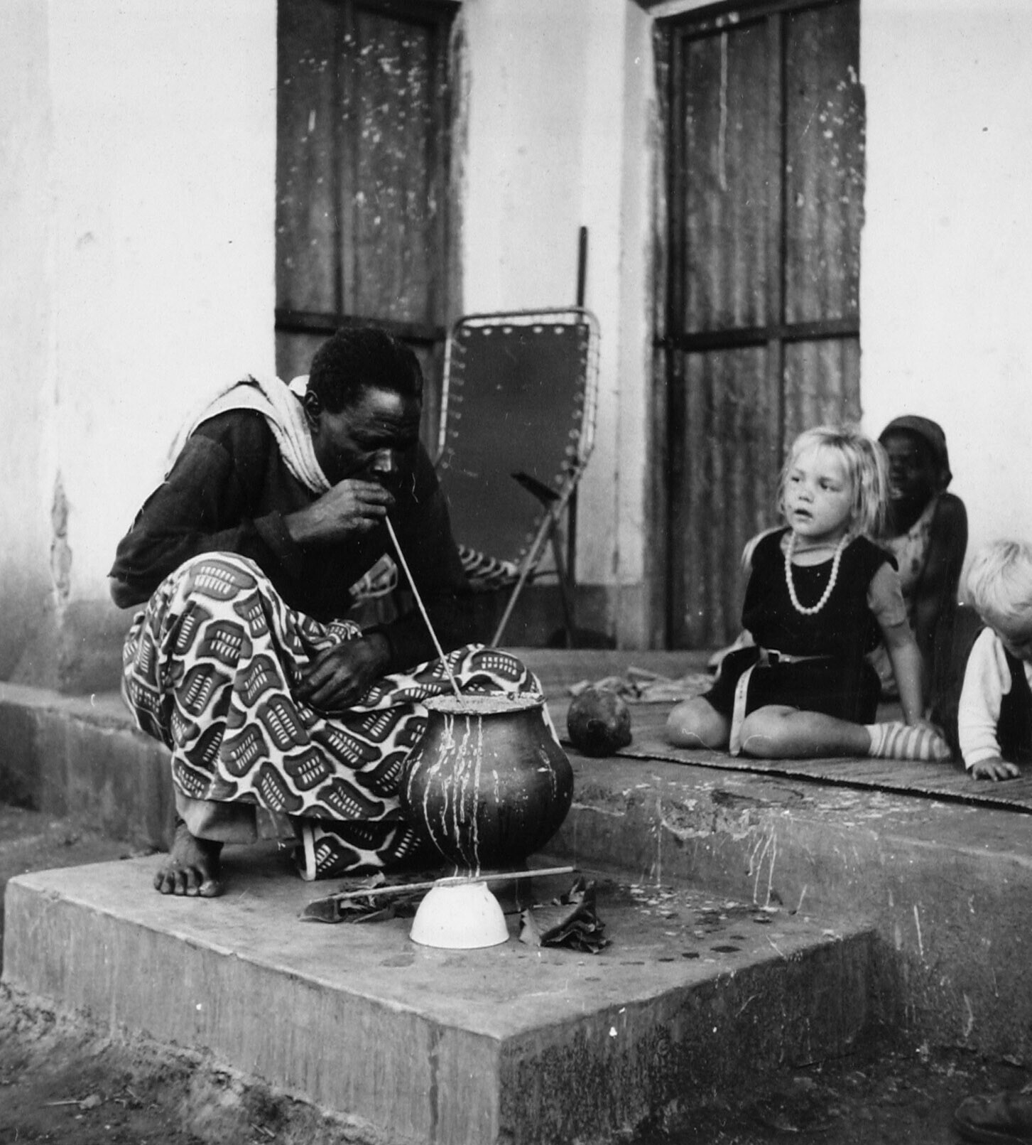 Man drinkt bier (pombe) op het bordes van Dr. Thoden...