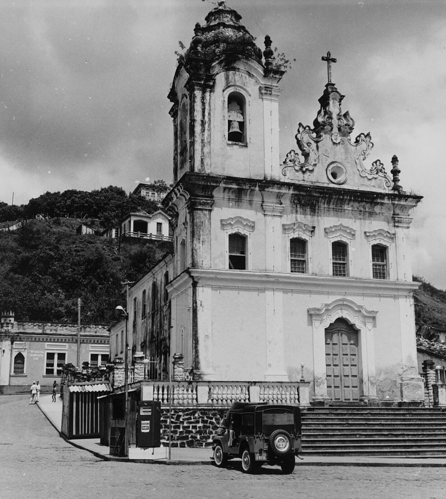 Kerk op de Praça Dasé, op de voorgrond is men bezig ...