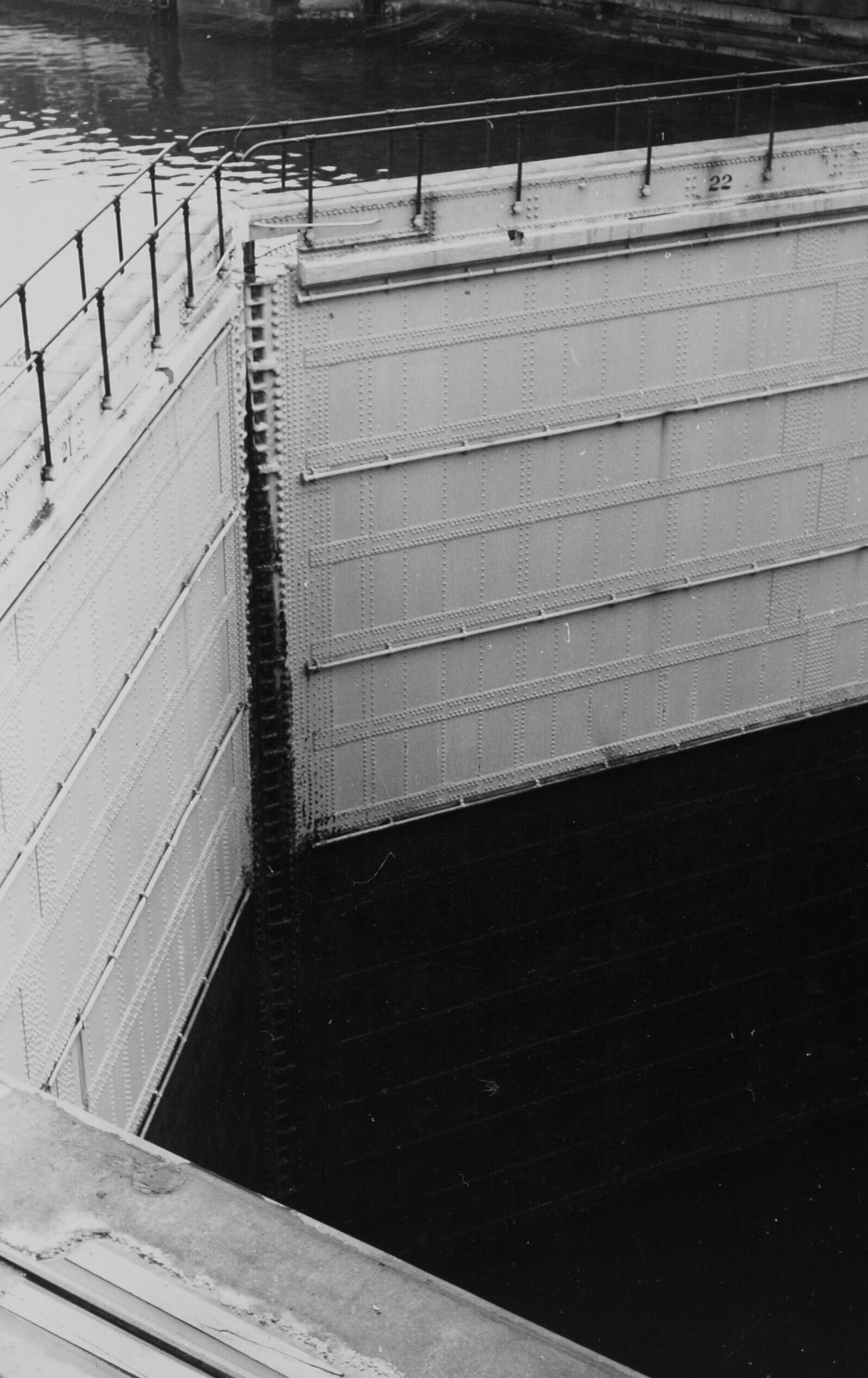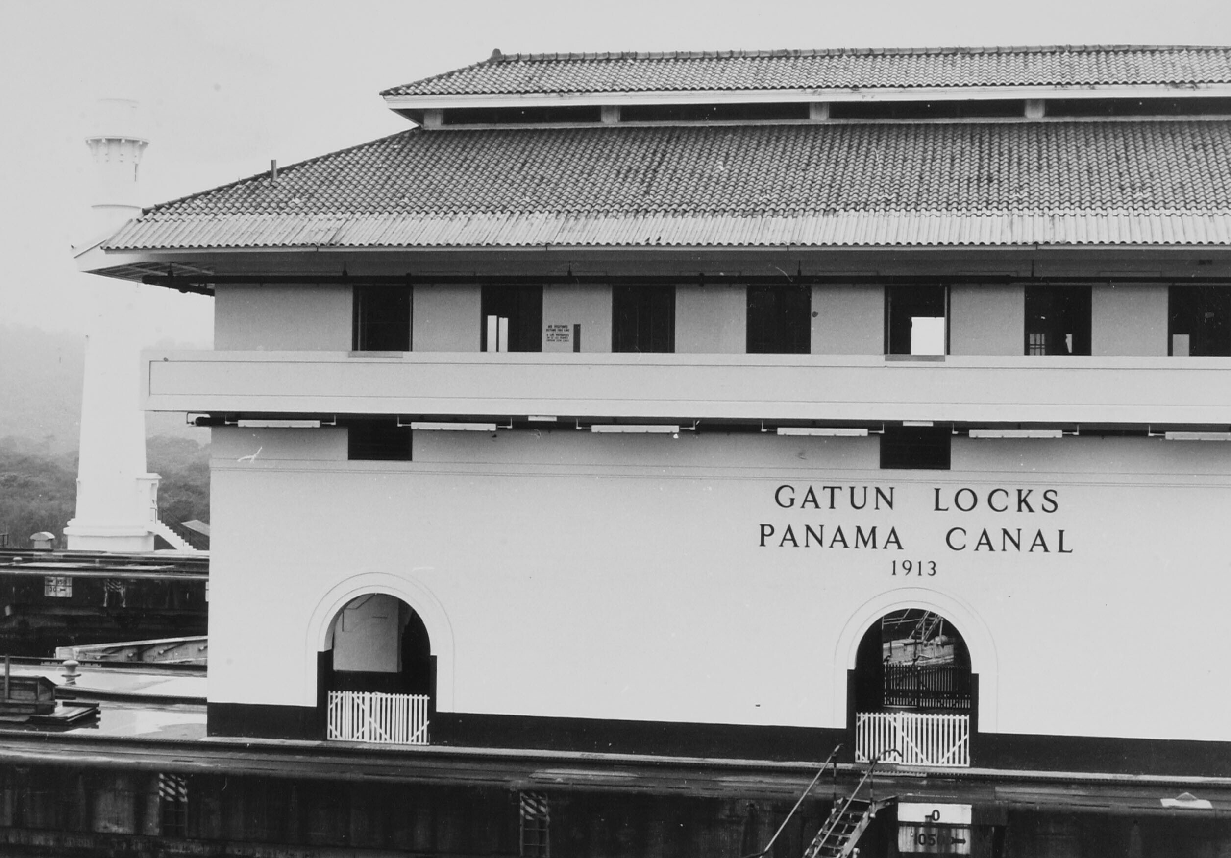 Panama kanaal. Sluisdeur geopend, waterhoogte gelijk
