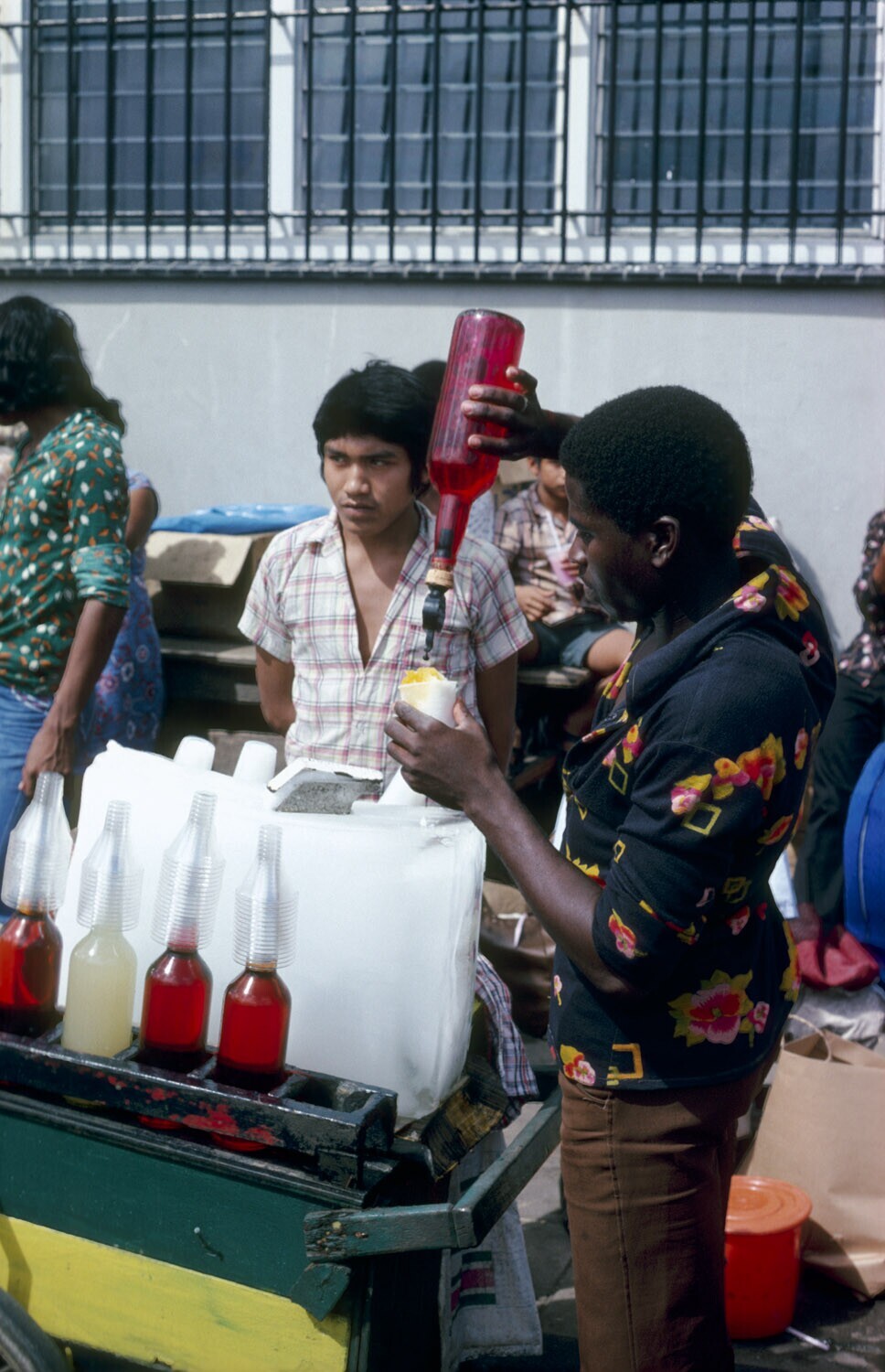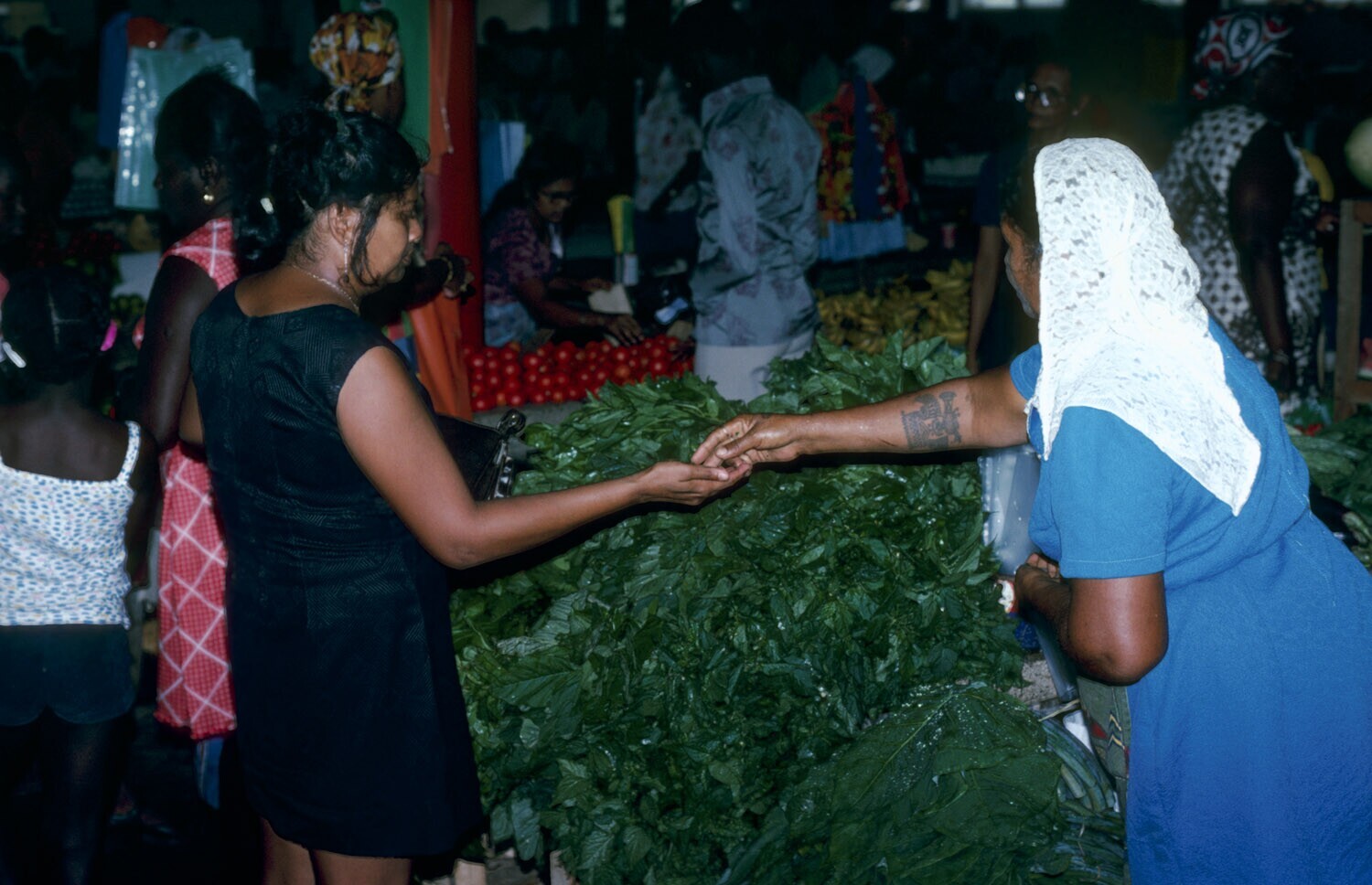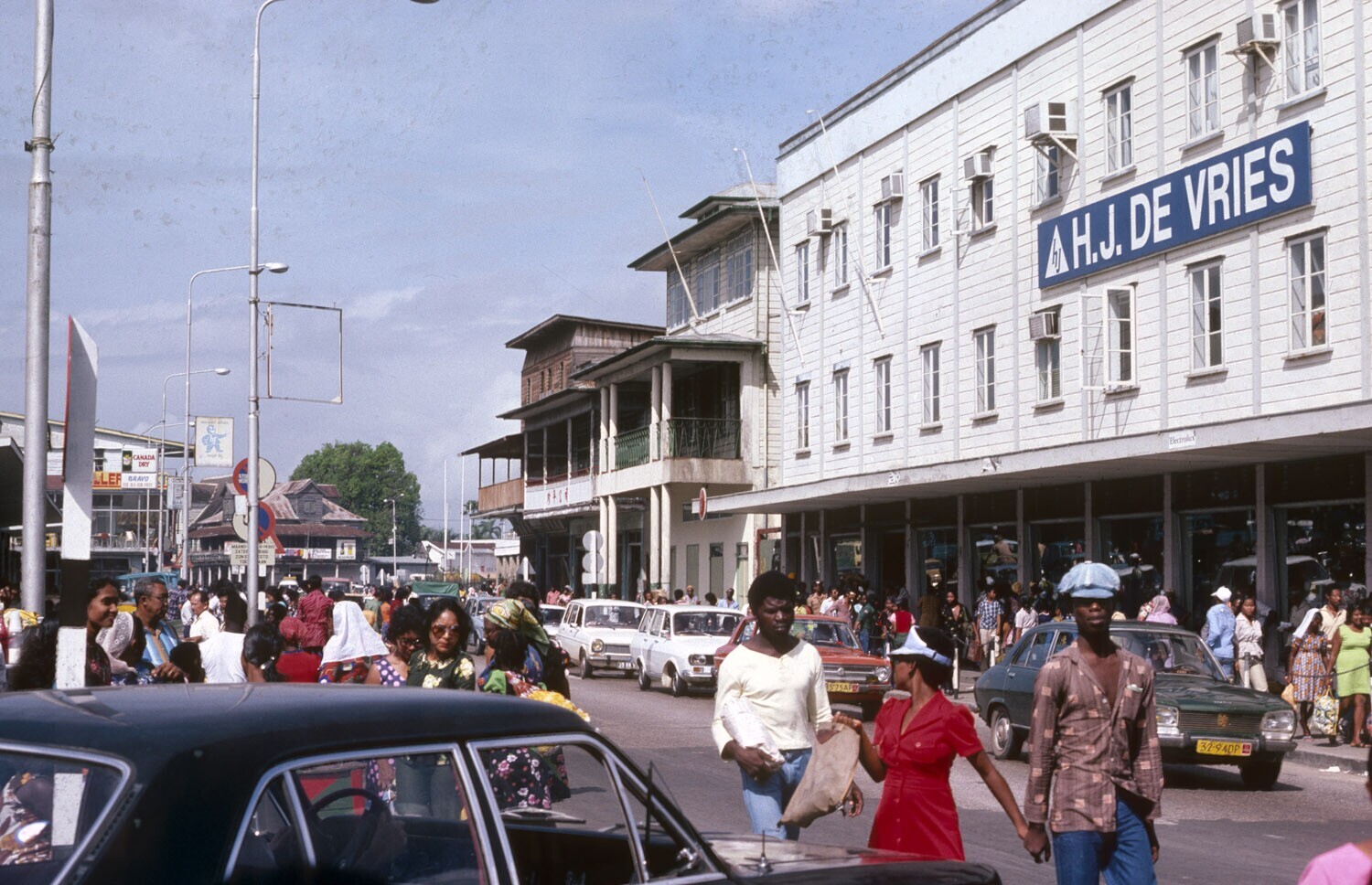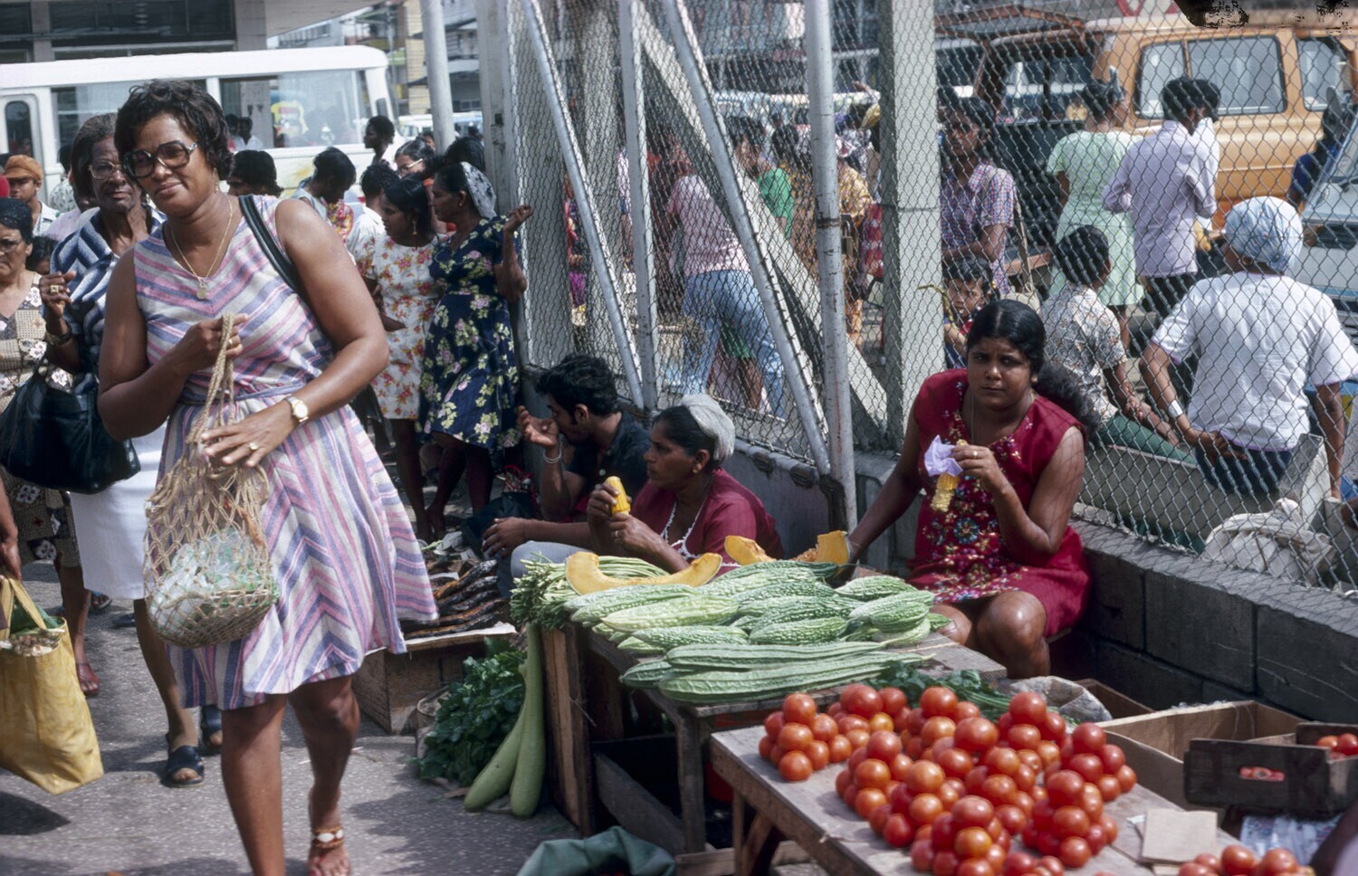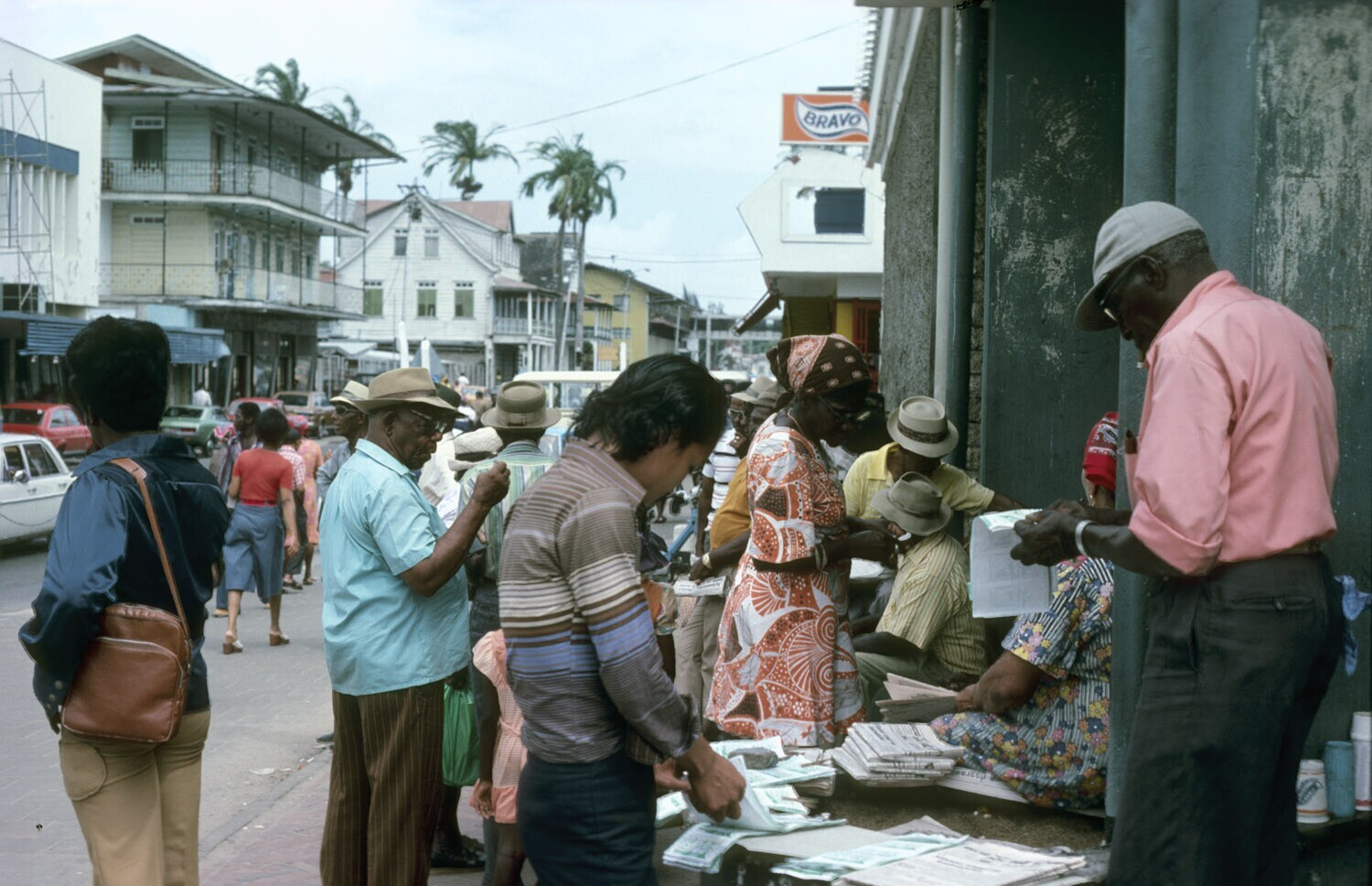 Mensenmenigte bij de markt te Paramaribo