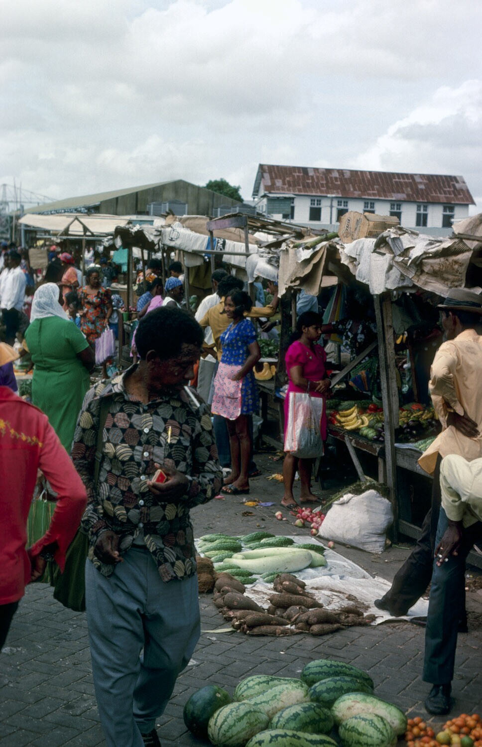 Markt buiten de markthallen te Paramaribo