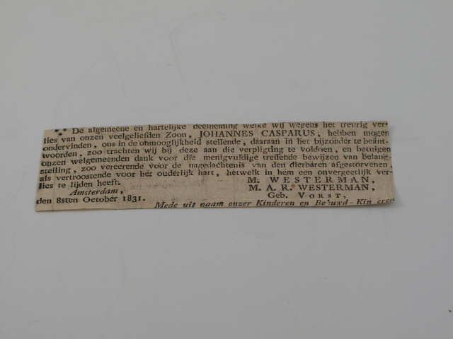 Knipsel uit Utrechtse Courant dd. 1831/08/29 betr. h...