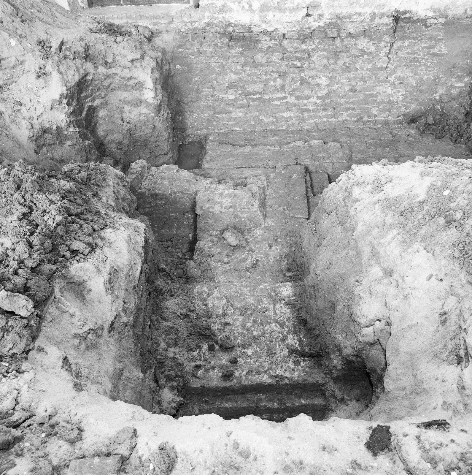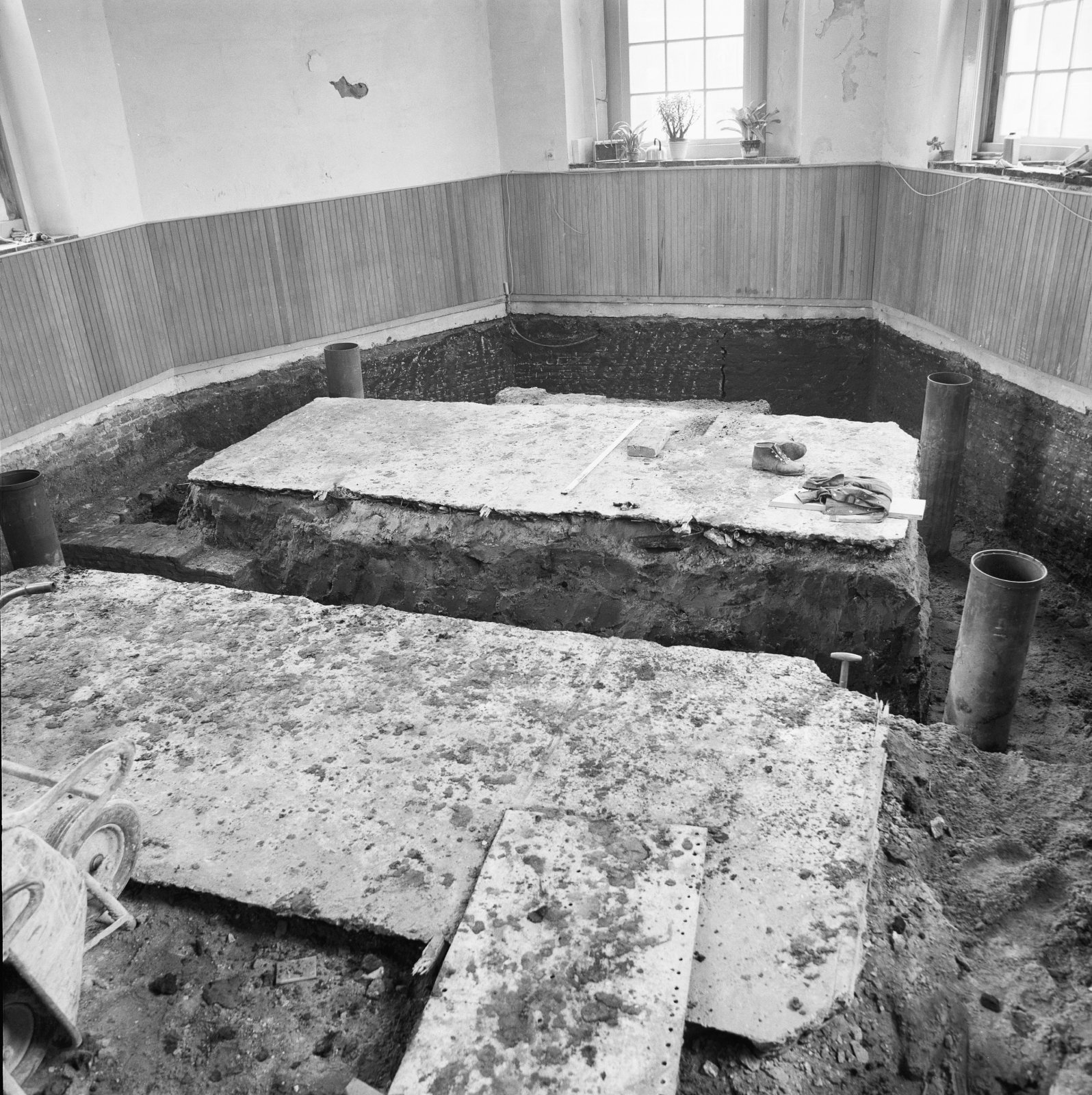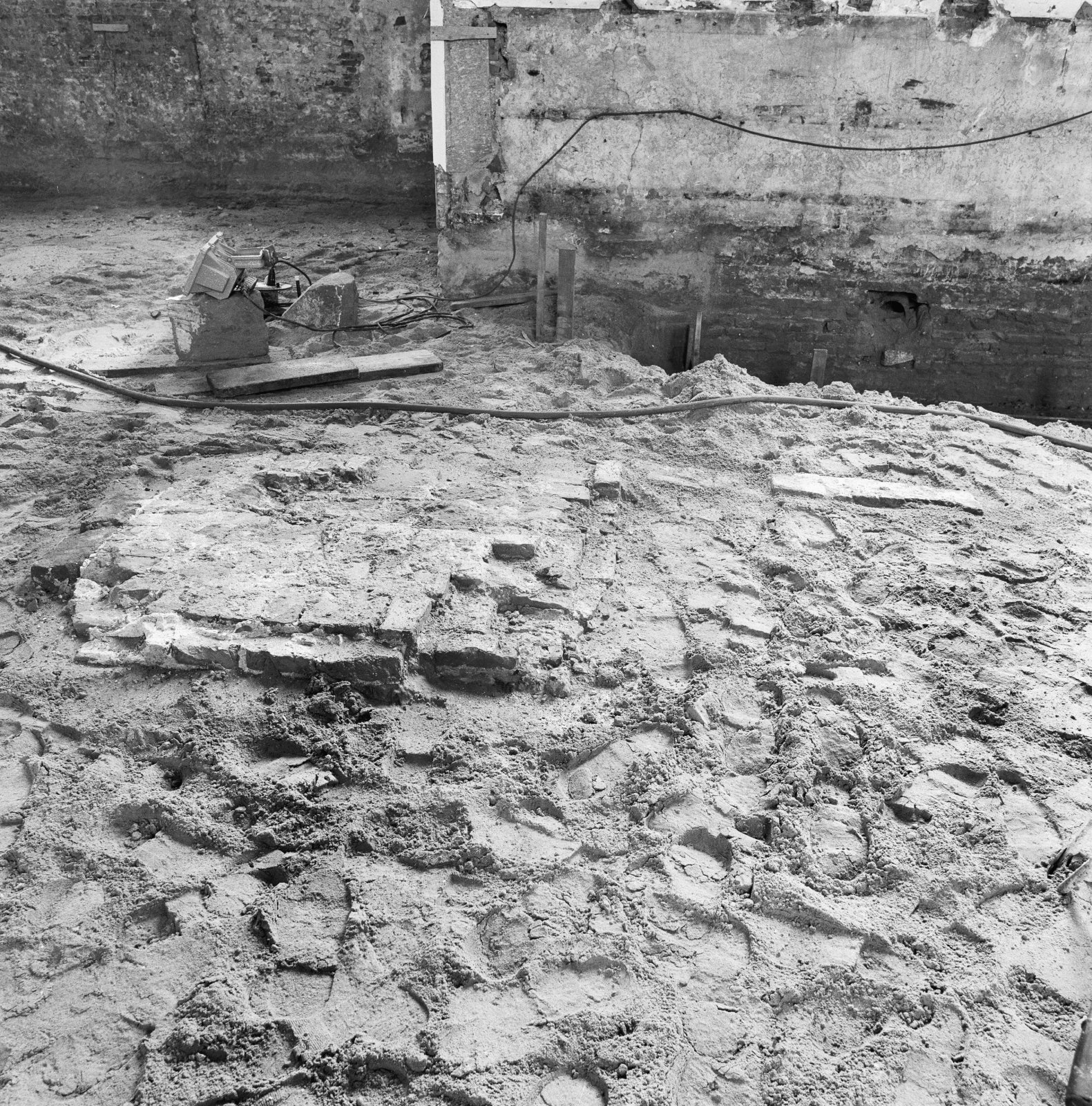 Interieur koor, restanten van oude fundamenten o.a. ...