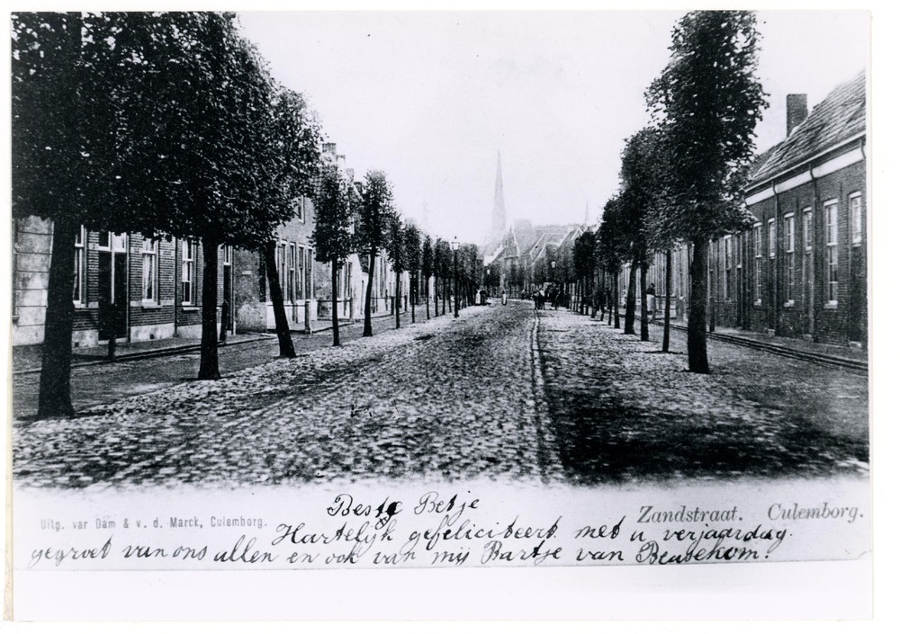 Foto, voorstellende de Zandstraat te Culemborg, begi...