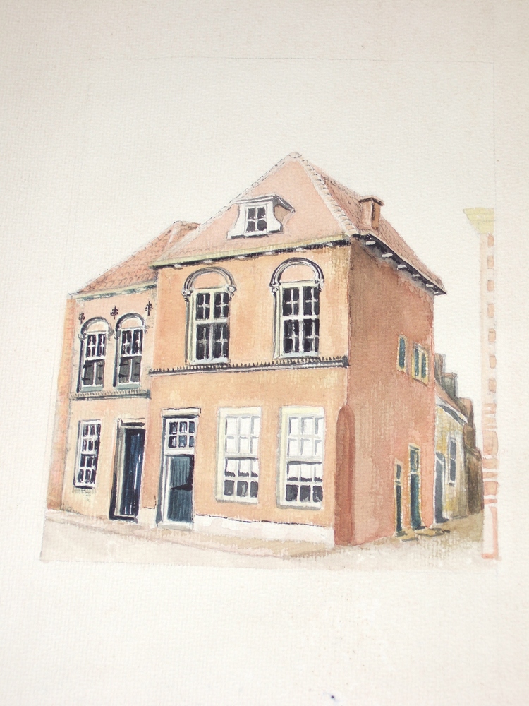 Aquarel, getiteld 'Achter het Huis van den Burgemees...