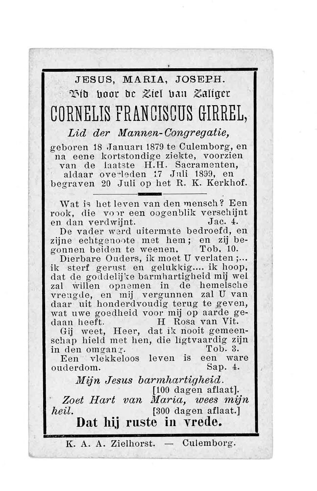 bidprent voor Cornelis Franciscus Girrel. Geboren 18...