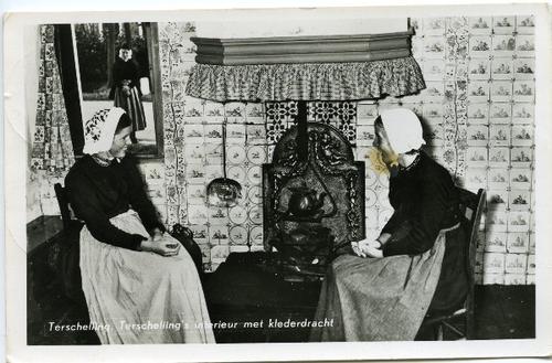 Prentbriefkaart in kleur van twee vrouwen in Tersche...