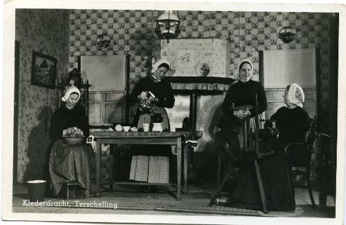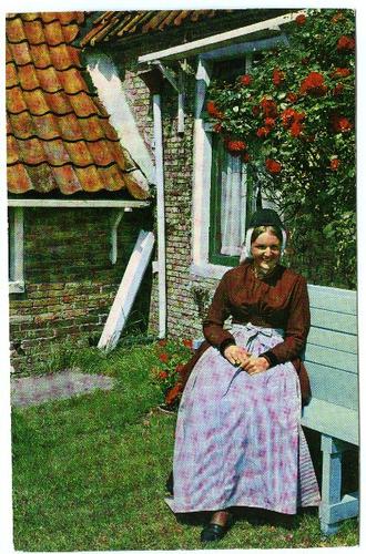 Prentbriefkaart in kleur van een vrouw in Terschelli...
