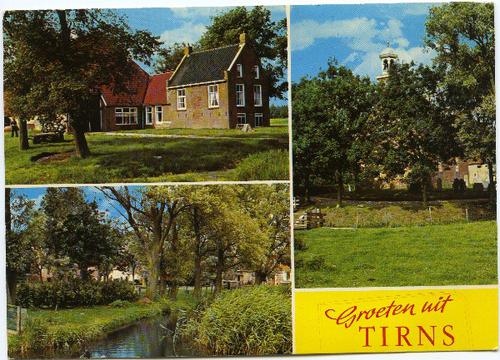 Prentbriefkaart in kleur met dorpsgezichten van Tirn...