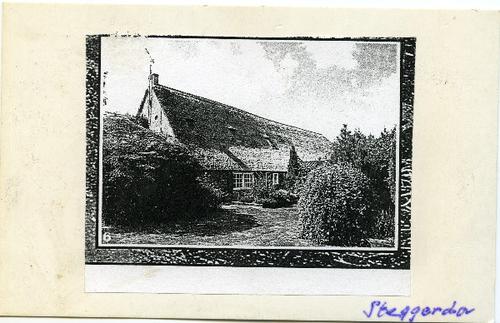 Knipsel in zwart-wit van een stelpboerderij bij Blau...