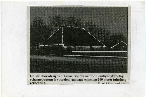 Knipsel in zwart-wit van boerderij te Ureterp, 1977