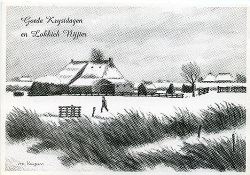 Prentbriefkaart in zwart-wit van een kerstkaart van ...