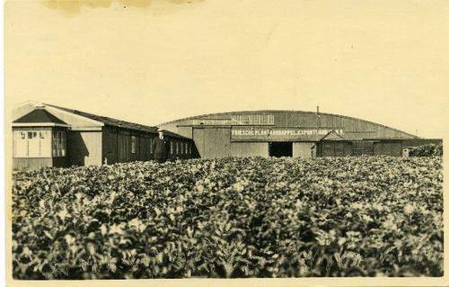 Prentbriefkaart in zwart-wit van een veld aardappele...