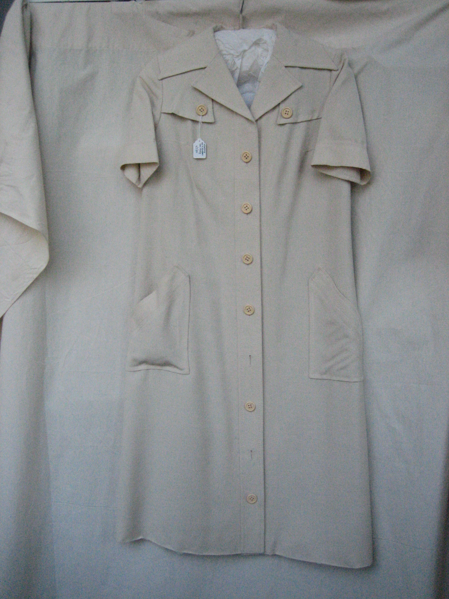 Jurk van beige fibranne, hemdmodel met reverskraag e...