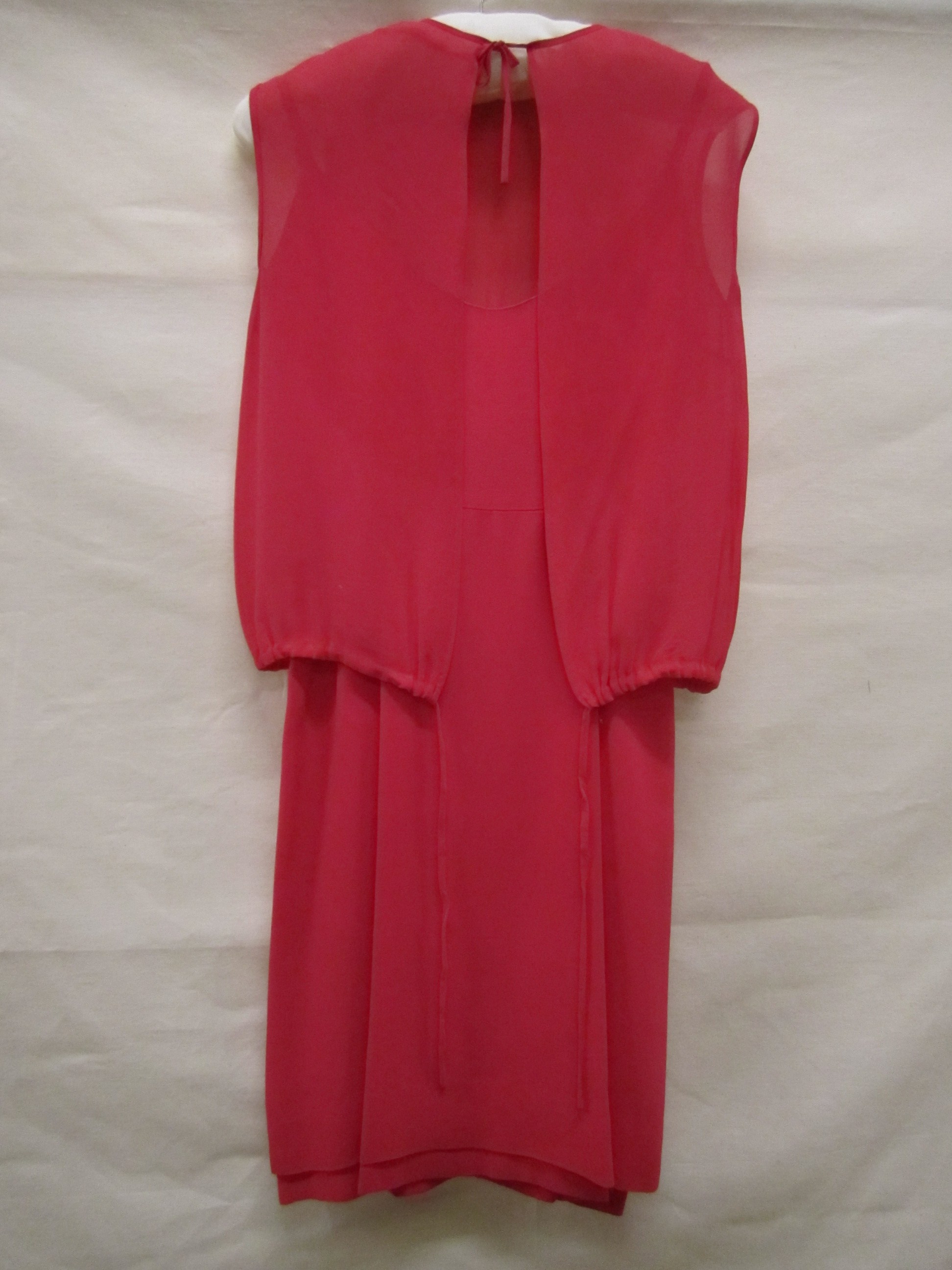 Jurk van roze wollen crêpe, kort model met lange rag...