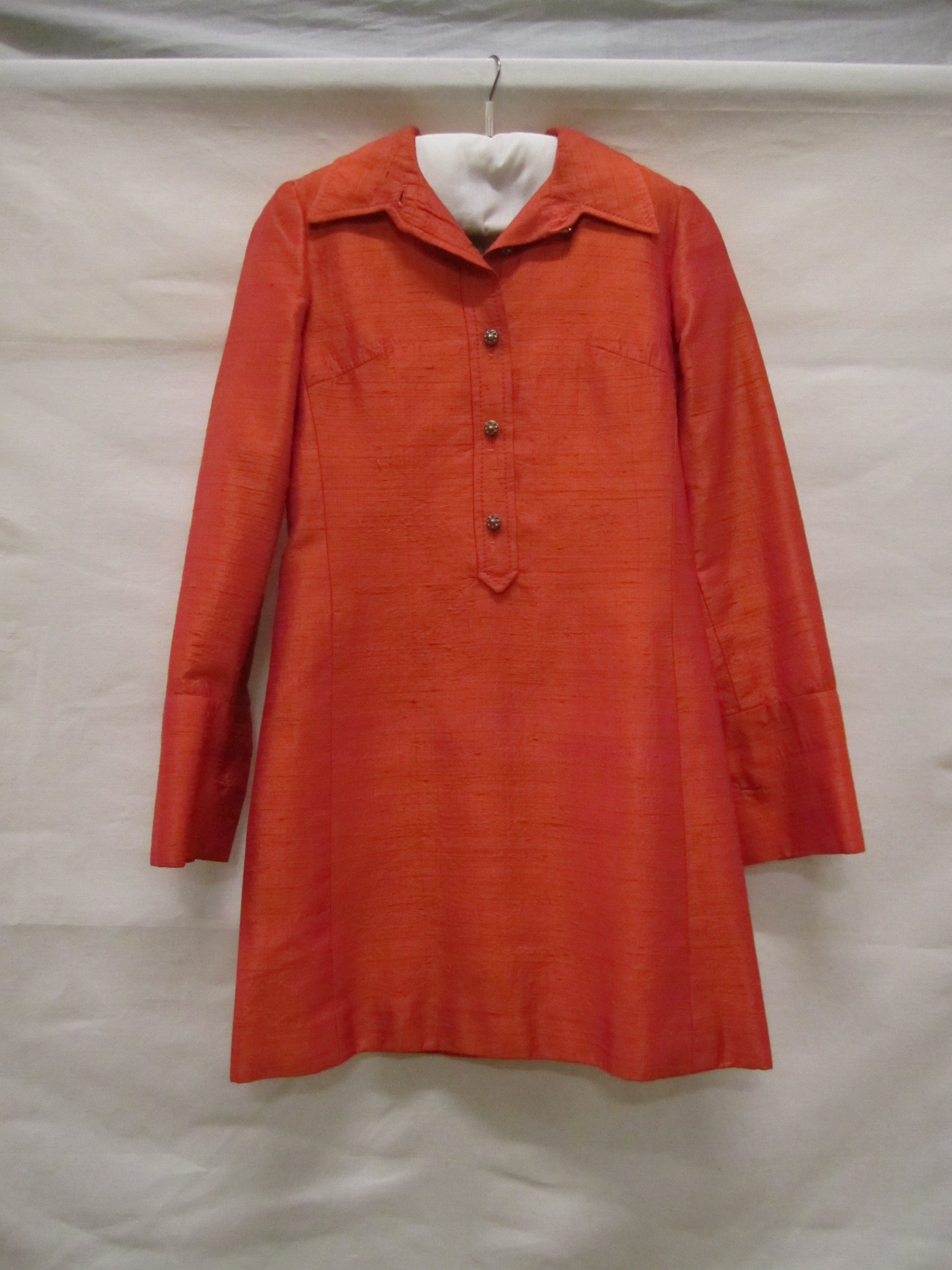 Mini-jurk van oranje/rode changeant thaizijde met ee...