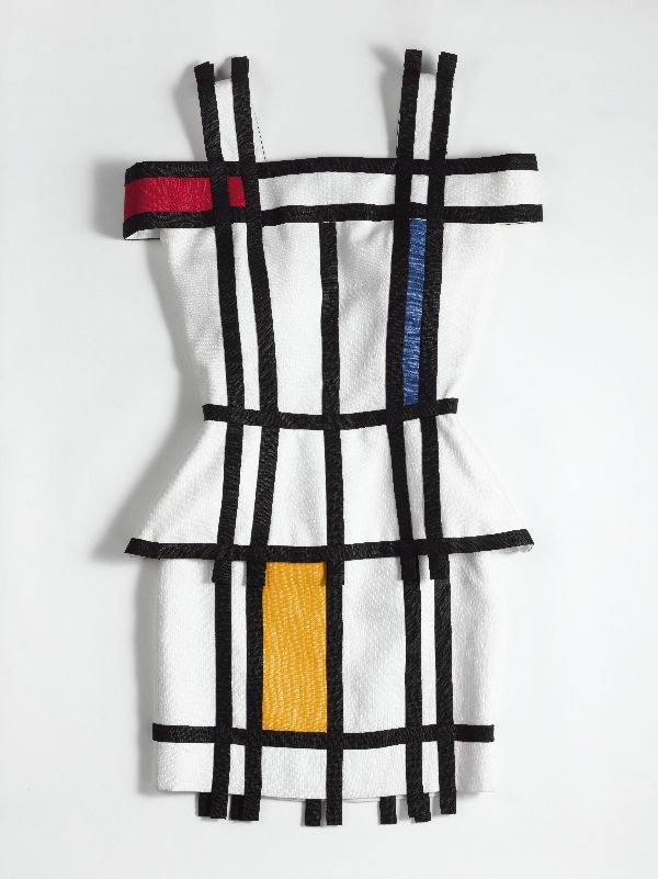 Ensemble van wit linnen met kleurige vlakken in Mond...