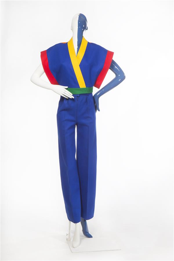Ensemble bestaande uit jasje, wikkelrok, blouse, cei...