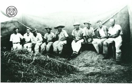 Op de combine: Wim van der Geest; hr. Rietjens. Op de trekker: Gerard Eijsink sr. (2)