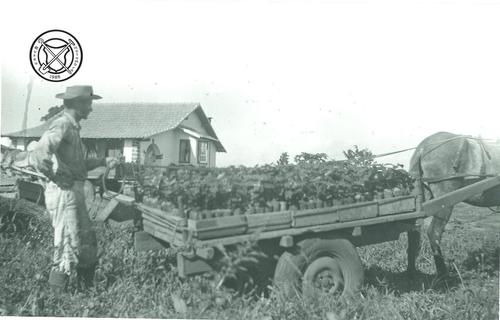 Stekken van koffieplanten per kar vervoeren
