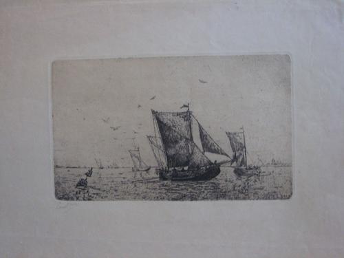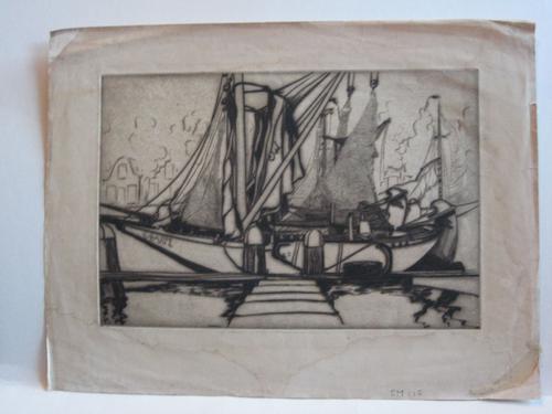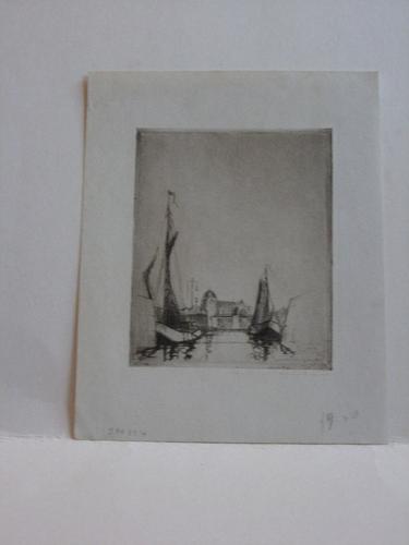 schepen in de haven van Veere; ets