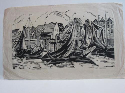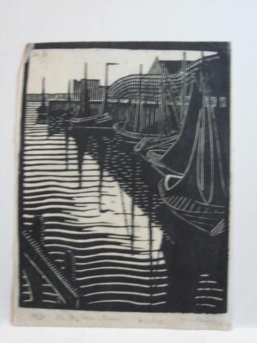 haven van Veere, 'The Harbour Veere'; linosnede