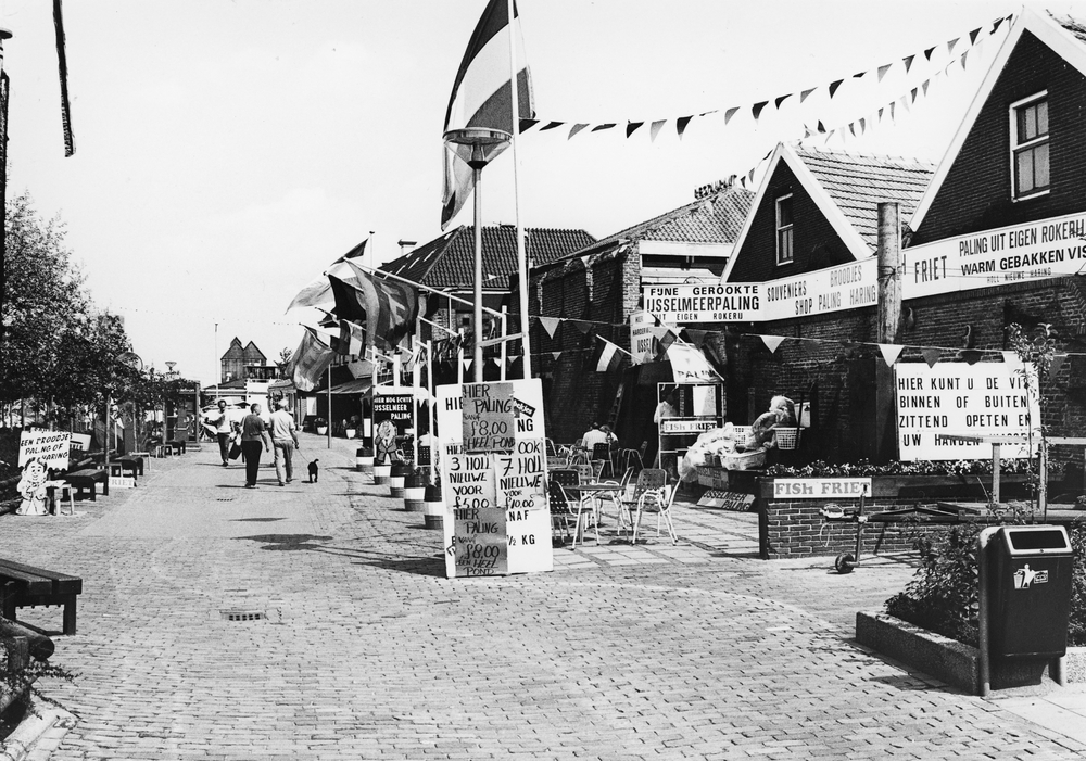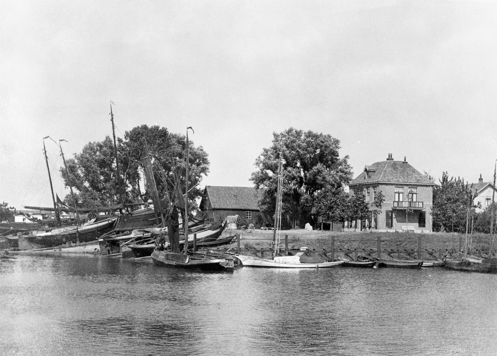 Afgemeerde binnenvaartschepen in de Vissershaven