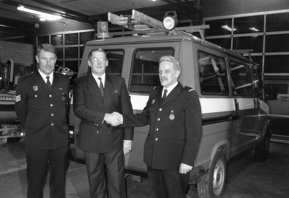 Burgemeester De Groot feliciteert brandweerjubilarissen