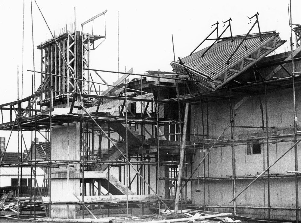 Stormschade op de bouwplaats van wooncentrum De Zeve...