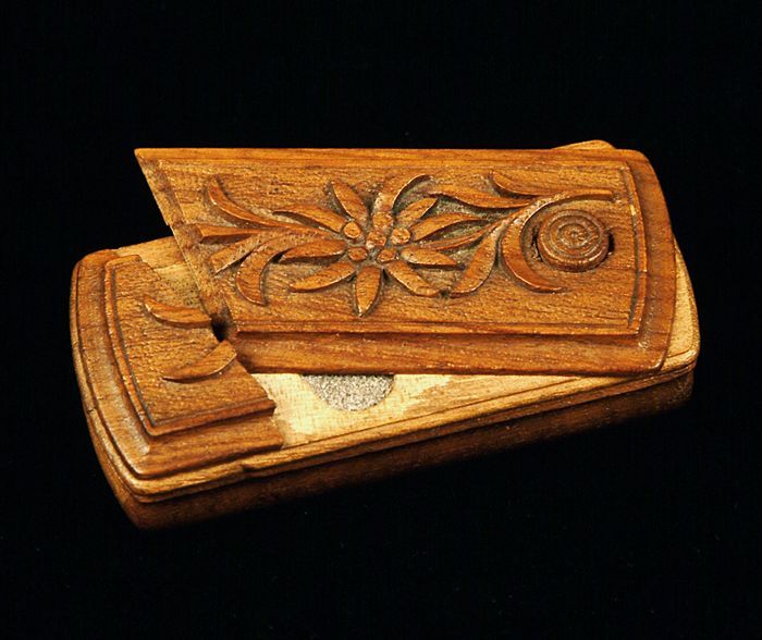 Houten lucifersdoosje met veiligheidssluiting en afs...