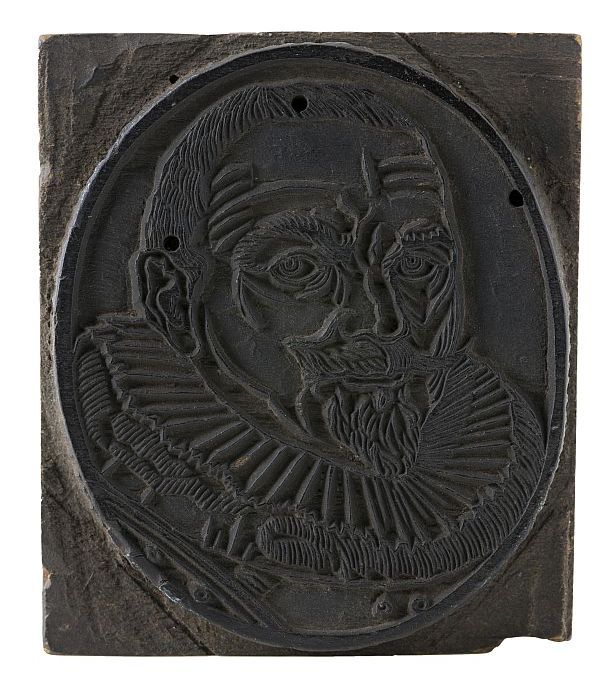 Houten cliché met portret Piet Hein