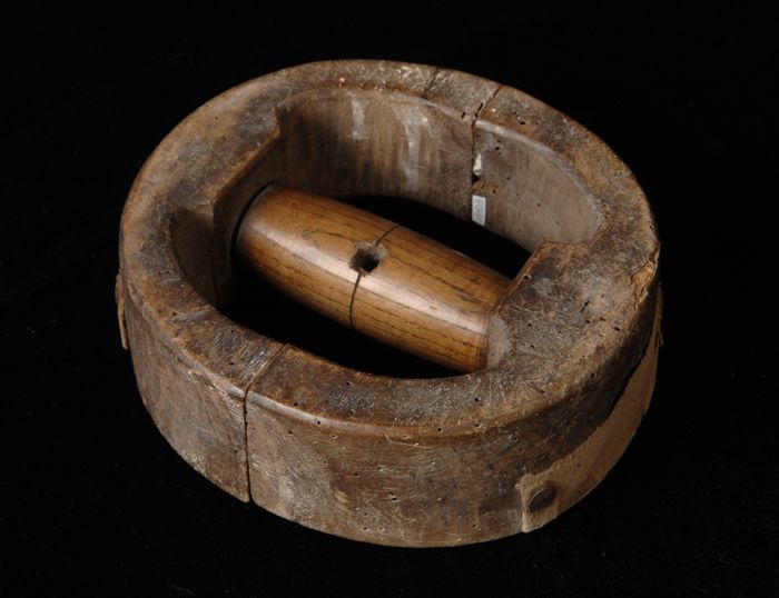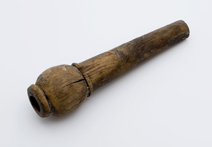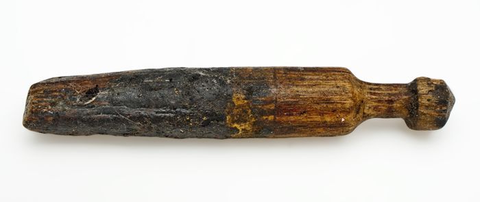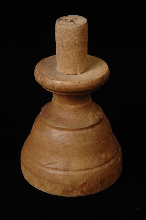 Houten tap of breinaaldhouder, met bolling en twee p...