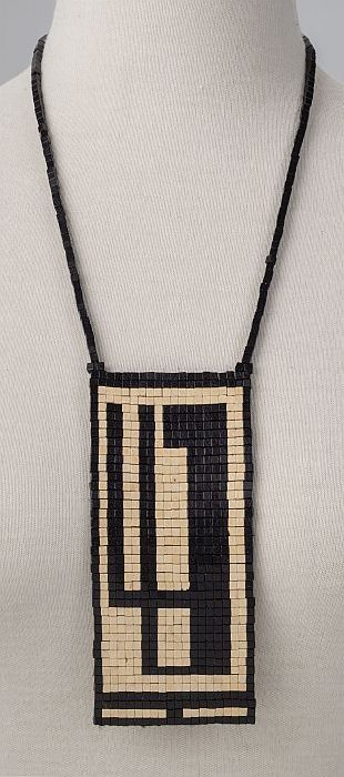 Ketting van platte kubusvormige zwarte en ecrukleuri...
