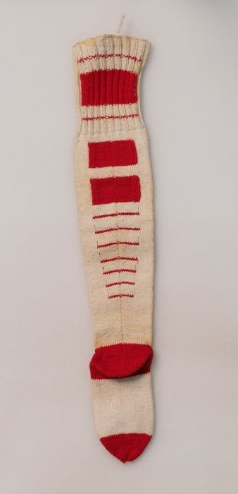 Paar sokken van crèmekleurig fijn tricot katoen met ...
