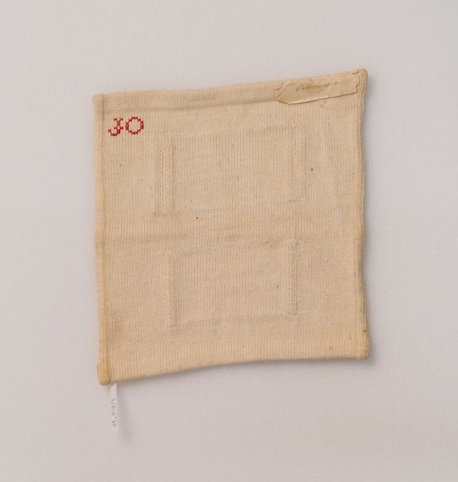 Letterlap gewerkt in kruissteek in rood katoen op ze...