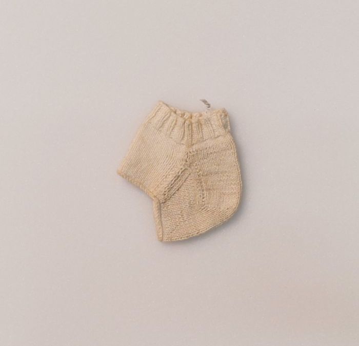 Breiwerk in crèmekleurig katoen, hiel van een sok, o...