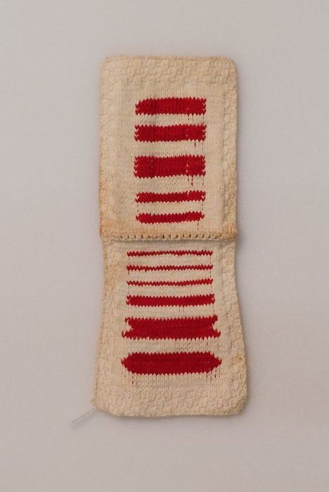 Maaslap gebreid van wit katoen met maaswerk in rood,...
