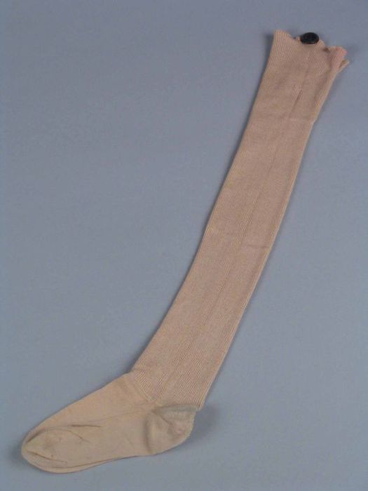 Paar kousen van beige tricot katoen met ajourpatroon