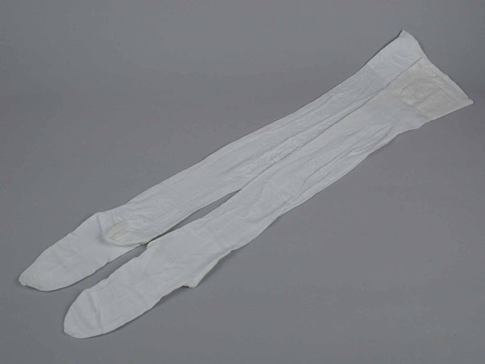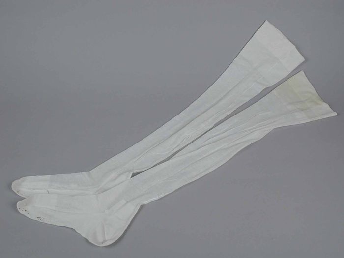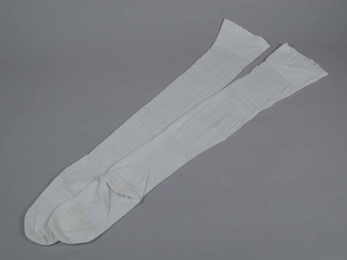 Paar lange kousen van fijn wit tricot katoen