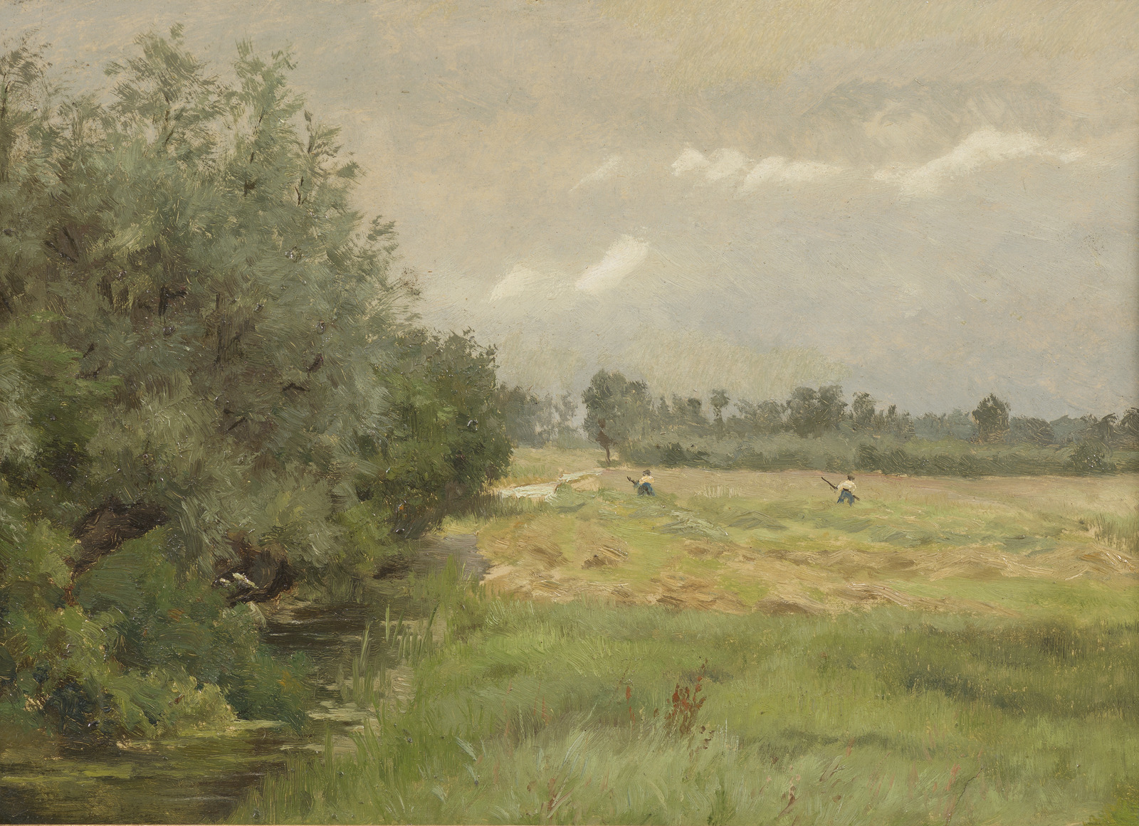 Landschap met hooiende boeren
