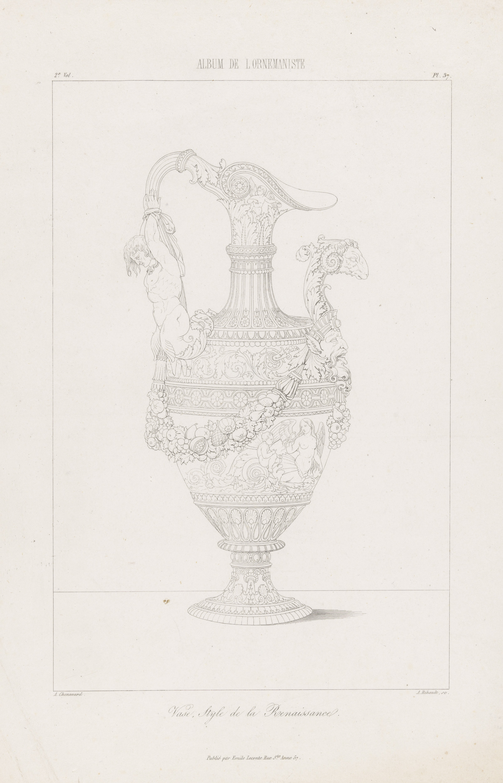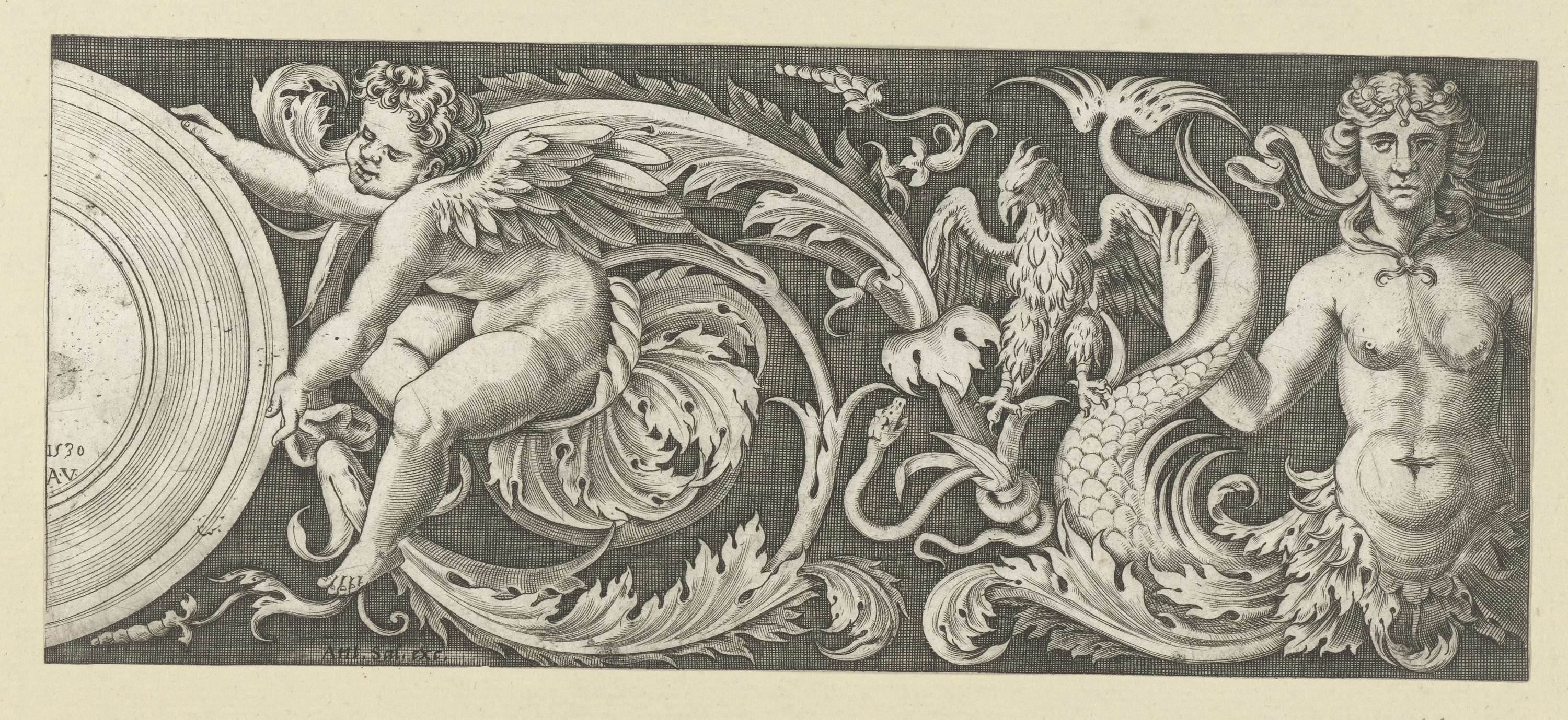 Bladranken waarop links een putto zit